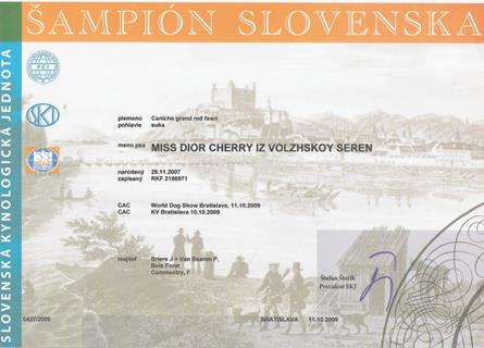 championne de Slovaquie. Le Cacib et la Rcacib ont été remporté par