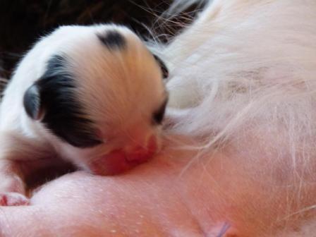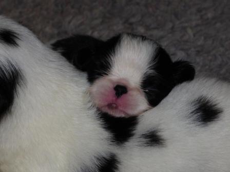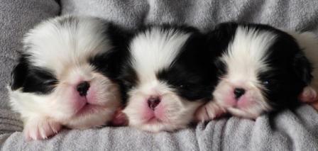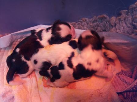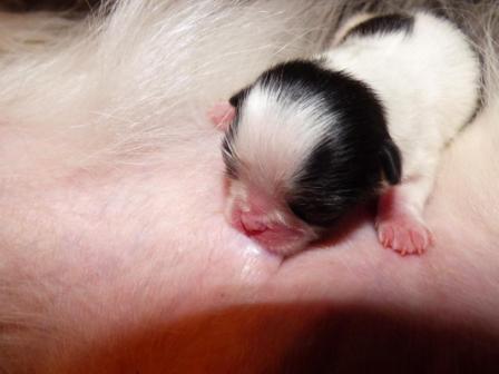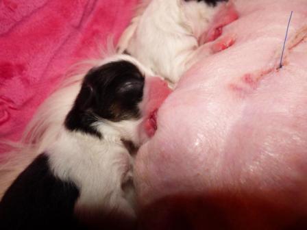 Marina a donné naissance par césarienne, le 8 février 2017, à deux males un noir et blanc et un roux charbonné et une femelle noire et blanche.