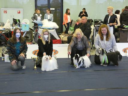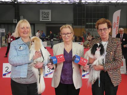 5 épagneuls japonais du royaume de la Bichonnerie étaient inscrits. Azucena en classe vétéran, Ael en classe ouverte, Organza en champion femelle - 4 kilos, sa soeur Odely en champion femelle plus de 4 kilos et leur frere Inca en champion plus de 4 Kilos. Et le moins que l'on puisse dire c'est que nos chiens n'ont pas démérité .