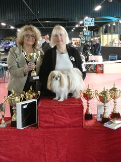 Pour cettre exposition 2 épagneuls japonais nés à la maison etaient inscrits, Lu en classe ouverte qui remporte le Cacs et sa soeur Organza en classe champion fait le 1er excellent, c'est leur pere qui fait meilleur de race